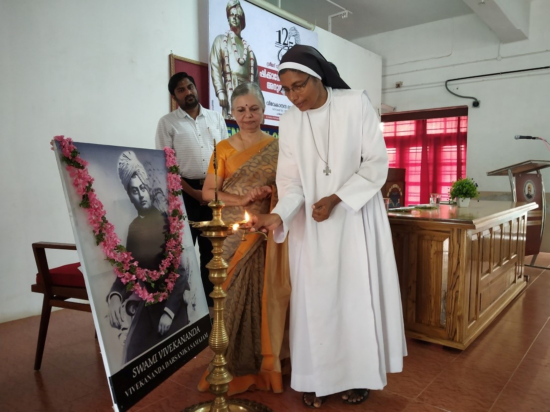 Later in the evening, at 5:30 p.m., a commemorative function was held at LEAD College of Management. The event was inaugurated by Smt. Prameela Sashidharan, Chairperson of Palakkad Municipality. In her address, she highlighted that the youth of India should be inspired by the ideals of Swami Vivekananda, which could shape the bright future of the nation.