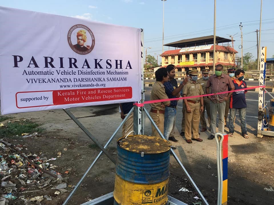In what is believed to be the first initiative of its kind in India, the Samajam presented two Vehicle Disinfection Tunnels to the Walayar Checkpost, the interstate border between Tamil Nadu and Kerala. These tunnels were installed to sanitize vehicles entering Kerala, thereby reducing the risk of viral transmission across state lines. This pioneering effort received wide media attention and was featured in The Hindu. (https://www.thehindu.com/news/national/kerala/automated-disinfectant-system-installed-at-walayar/article31302248.ece)