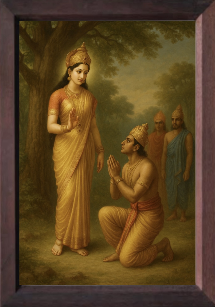 In the Kenopaniṣad (Chapter IV), this truth is revealed through a symbolic story. The gods, intoxicated by victory, boast of their power. An unknown presence tests them: neither Agni (fire) nor Vāyu (wind) can comprehend it. Only when Indra humbly seeks the truth does Umā Haimavatī appear and declare that this subtle power is none other than Brahman — Tadvanam — the adorable foundation of everything.